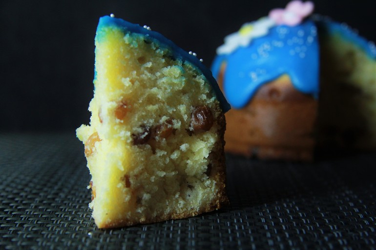 Доброе утро! Этого замеса хватит на 1 высокий куличик диаметром 12 см. Или 2 невысоких поуже.