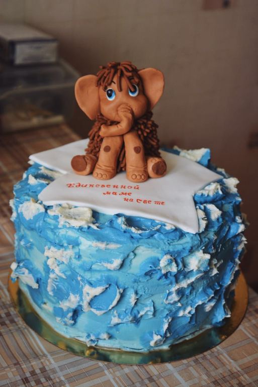 Украшение тортов кремом,шоколадом, фруктамиФигурку лепила впервые, вроде милый получился. Внутри бисквит, крем пломбир, ананас, сверху сырный. Мамонт при поедании тортика не пострадал)), оставили как сувенир).