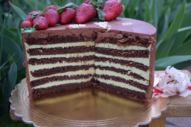 Читаю и удивляюсь, как у меня в форме 22 см получается он высоким?) На 4 коржа режу всегда. Но я по своему его делаю. Молоко теплое, масло подтапливаю и разрыхлитель иногда могу бросить. Уксус в самом конце, взбиваю миксером все.