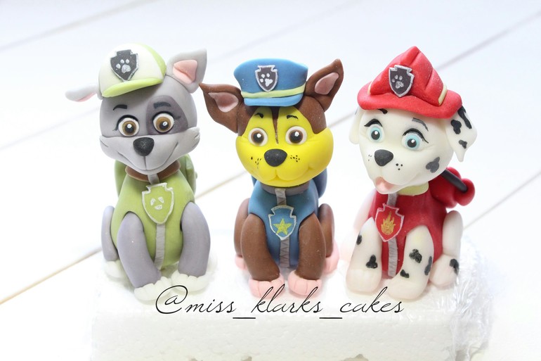 Фигурки и цветы из мастикиЗаказали одновременно аж 2 торта и именно щенячий патруль. А тут и Пасха и другие заказы, думала не справлюсь, так как лепить пришлось впервые. Хотела заказать у девчонок фигурки и не смогла. Вроде по фото все отлично, но очень страшно, если что-то будет не так. Пришлось лепить самой.
