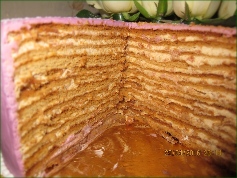 Медовик .Получился безумно вкусным,сочным,нежным и обалденно с медовым ароматом!!!