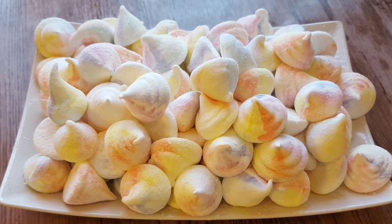 Получились нежные и тают во рту. Отлично держат форму, пружинят прям. Дети мои оценили. Готовятся легко и быстро. Такими можно и тортик украсить, вместо безешек. Детям понравится.