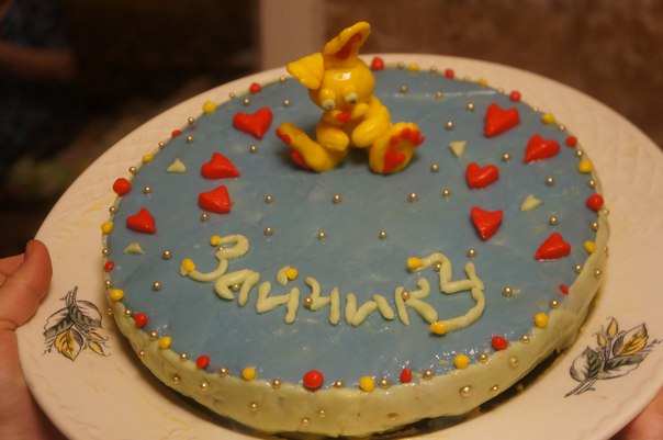комменты не читала, подозреваю, девочки уже поругали вас немного ;) а я сегодня сентиментально настроена и ваш грустный зайчик еще больше меня склонил сказать вам: молодец, что своей крошечке своими руками сделали тортик ;) очень трогательно ;))) удачи вам и не ленитесь - читайте инфу в сообществе