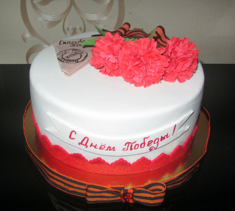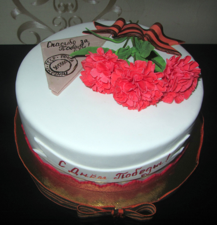 Гвоздики один в один как настоящие! Торт очень красивый, простой,ничего лишнего.
