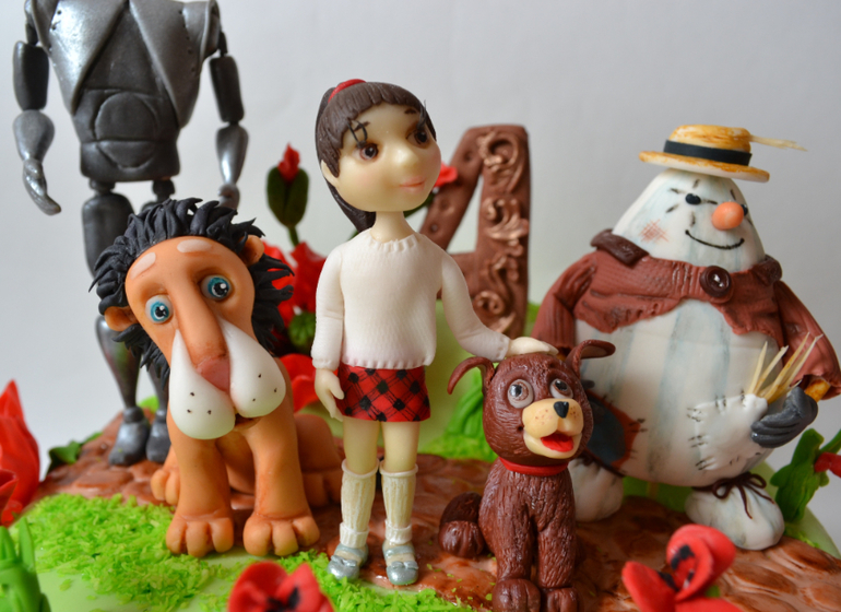Фигурки хорошенькие! И маковое поле и вообще весь тортик - такая прелесть. Только дорога была из желтого кирпича...в книжке. Ну это не важно. Отличная работа!