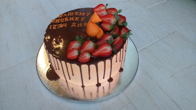 3) Тортик на ДР сестре. Шоколадные коржи, крем-чиз и вишня и молочный шоколад в прослойке. Идею лисенка подглядела на ББ у Марины на кексиках. Спасибо ей большое за это)