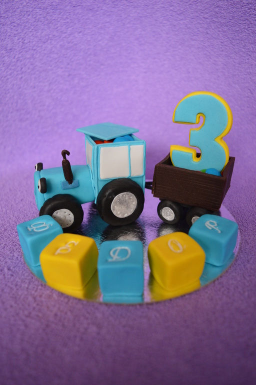 Фигурки и цветы из мастикиВот такой тракторенок с прицепом и кубиками у меня получился. Внутри кабины пастила, а сверху конфетки M&M's, в прицепе тоже конфетки.