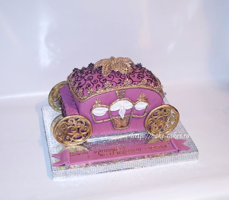 Очередная карета.Далеко не первая похожая работа.Меняю только незначительно цвета и слегка форму.Вес 4кг. Внутри Трюфель.Размер подложки 40см.*35см