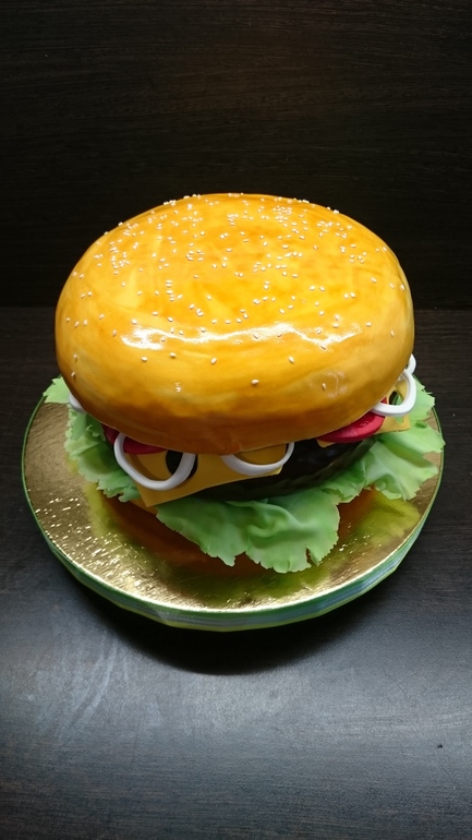 Тортик бургер для парней- двойняшек ))) диаметр 22 см, высота без фигурок 14 см