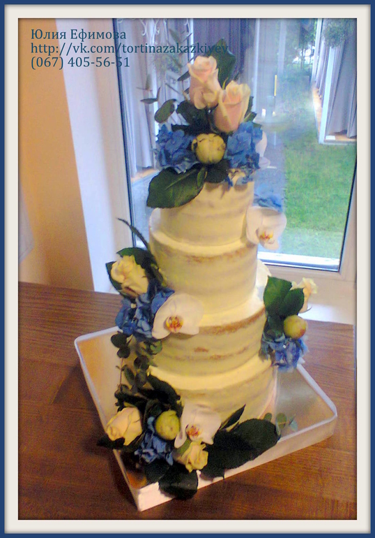 Украшение тортов кремом,шоколадом, фруктамиМой первенький 4-ярусник, первенький голыш и первенький с живыми цветами!!!