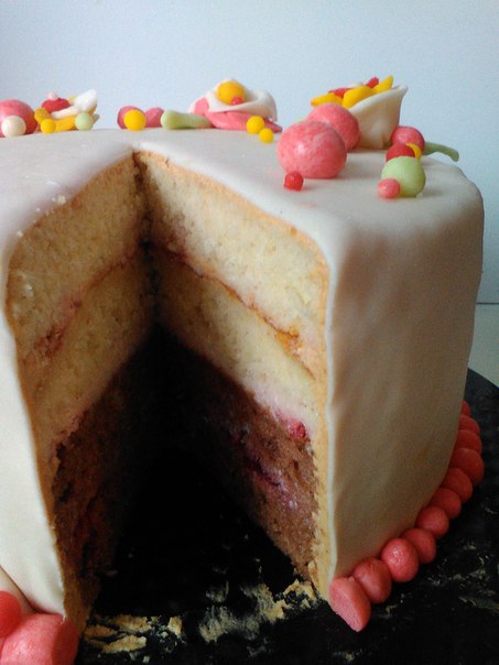 ...внутри два бисквитных коржа и сметанно-ягодный крем.Вес получился 2 кг почти.