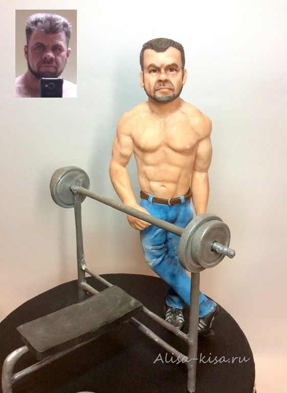 Торты для мужчинЯ снова с портретной лепкой. Но на фото хорошо отражено только лицо. Фигуру богатыря камера удлинила и как-то сузила(( и почему у камеры только один глазик(((