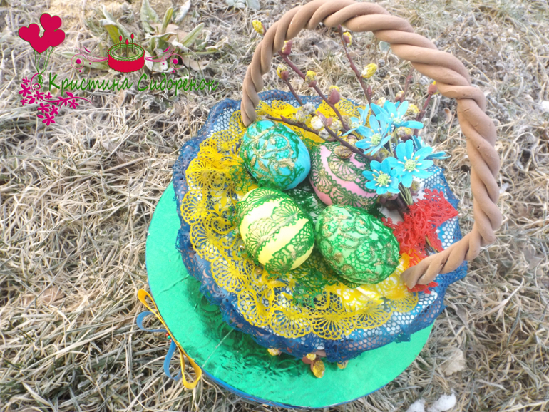 Не показывала я вам свою пасхальную корзиночку из мастики. Может к следующей пасхе пригодится идея кому-нибудь) Верба тоже из мастики