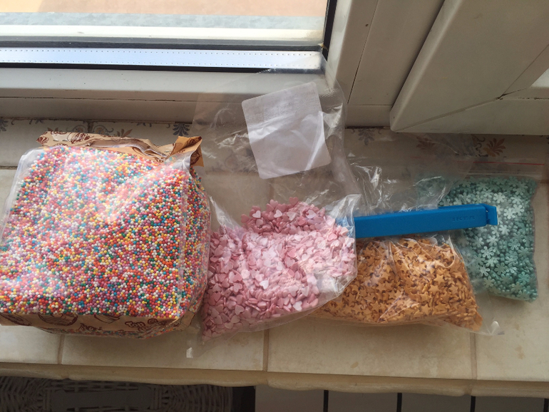 посыпки - разноцветные шарики - что-то я психанула и есть 800 грамм. по 40 рублей за 100 грамм