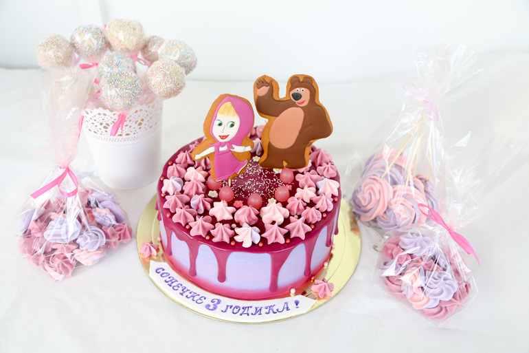 Плюс ванильные кейкпопсы в белом шоколаде. За них очень сильно переживала, так как на заказ делала впервые, но получились отлично. И гостям именинницы очень понравились, мне потом отзыв прислали. И много-много безе.