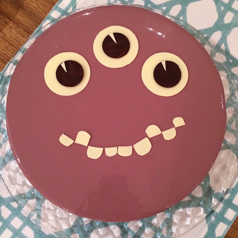 Второй для собственного сына, на его вечеринку веселых монстриков. Муссовый "Три шоколада". Весь декор из шоколада