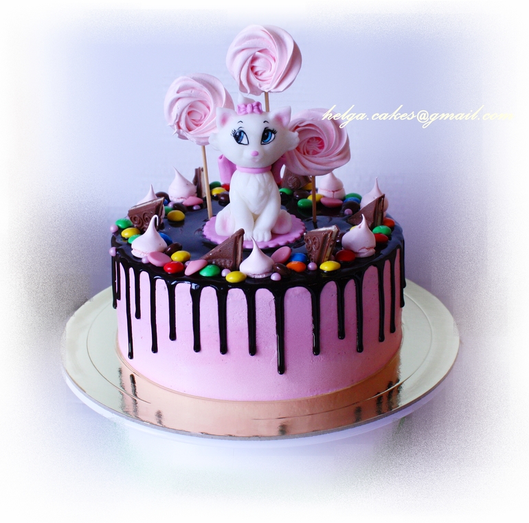 Украшение тортов кремом,шоколадом, фруктамиТолько теперь не с ягодками, а конфетками, и кошечка чуть подросла, стала кокеткой :)) Внутри 3 шоколада.