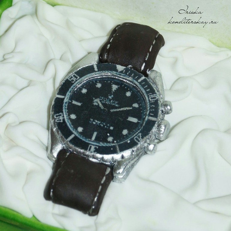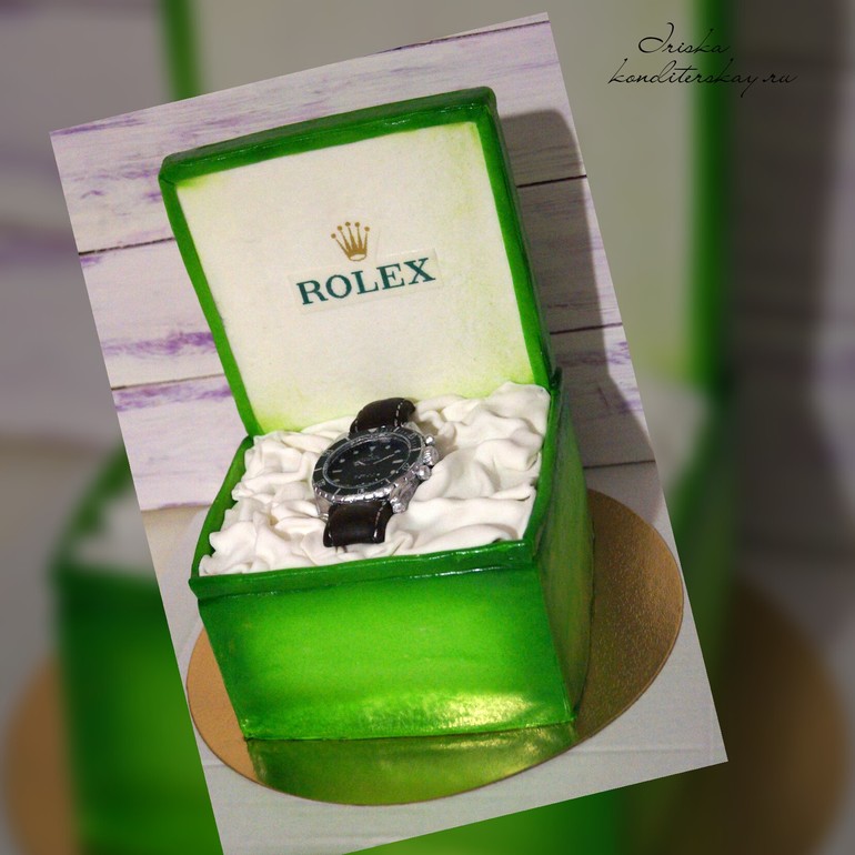 Торты для мужчинВес 2,8 кг . Внутри воздушный сникерс. Торт в кубе , крышка муляж. Часики из визьена .