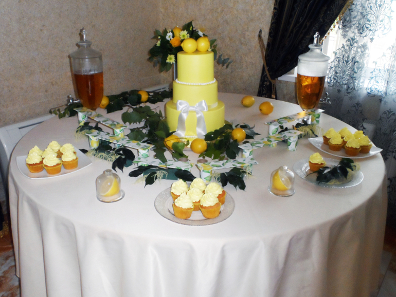 Он самодостаточен, торт. Потрясающий! Больше ничего ему не нужно. Обожаю желтый цвет, я бы даже бусинки убрала, очень красивый!
