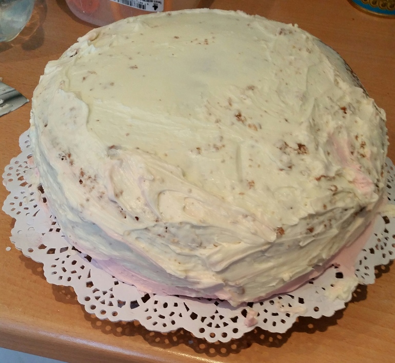 Да. Увидела видео урок и по нему сделала.т.е я сначала делаю чтоб вот так получился урод?потом в холодильник, потом опять покрыть и опять в холодильник, и уже в 3 раз покрыть красиво? А как долго торт держать в холодильнике? И еще-бисквит кусочки отваливаются при смазывании-это нормально?