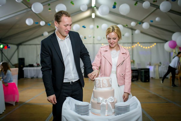 Сначала, глядя на фото, подумала, что скромненький тортик (по украшалкам). Потом мнение изменилось, глядя на супружескую пару с тортом - получилось всё очень гармонично!