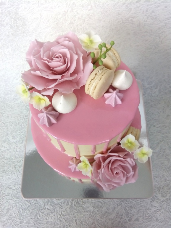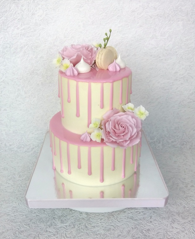 Украшение тортов кремом,шоколадом, фруктамиВес 4,4кг, ярусы (ок.) 16 и 22см. Покрытие крим-чиз+ зеркальная глазурь. Цветы хотела живые, но заказчики нстояли на сахарных)))