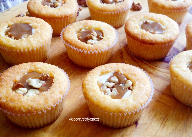 Капкейки с карамельным кремом, орешками и домашней соленой карамелью)