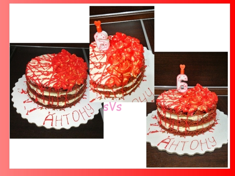 Покажу некоторые тортики от первых до последнего (пока только для родных пеку, но надеюсь на большее и буду стараться). Сильно не ругайте, т. к .мой самый страшный критик - это я, и вечно недовольна результатом. Знаю, что мне не хватает четкости (работаю над этим), но больше всего не хватает времени (малыши вечно тянут и куда-то зовут). Еще, как хобби, изготовление тортов - дорогое хобби и для фигуры (у меня итак не ахти)- просто кошмар. И еще не хватает праздников, чтоб торт был по-поводу, а не только для опробования рецепта (в город переехали год назад, подругами не обзавелась еще, т. к. была тяжёлая беременность, а теперь только с детками). Ладно, не будем о грустном..