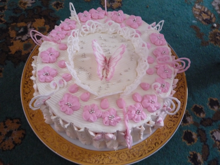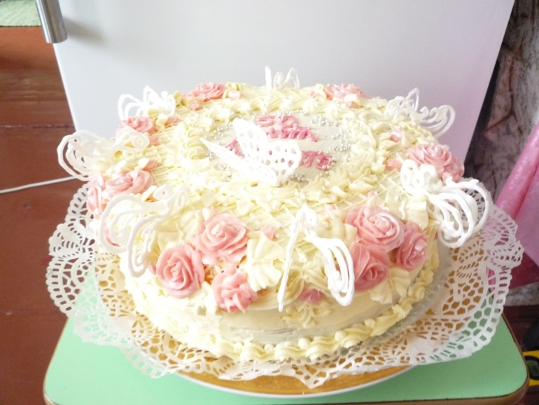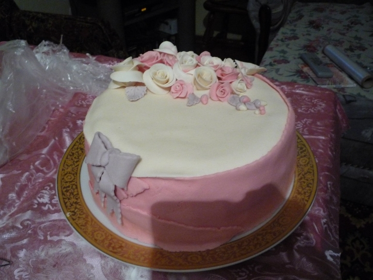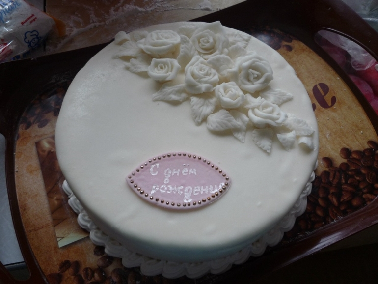 Конечно много недочетов и я их прекрасно вижу плюс у меня совсем мало вырубок и всего 4 красителя, поэтому сделать так как этого хочется не получается. Мастику делаю сама, только один тортик из покупной( белый с белыми розами). Хочется много всего купить но экономическая ситуация не позволяет. Вот так, но не смотря ни на что мне очень нравится это занятие и каждый тортик сделан с любовью.