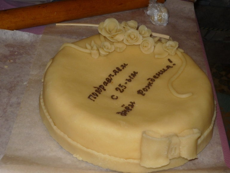 Потом торт покрытый марципаном. про выравнивание я даже не слышала.