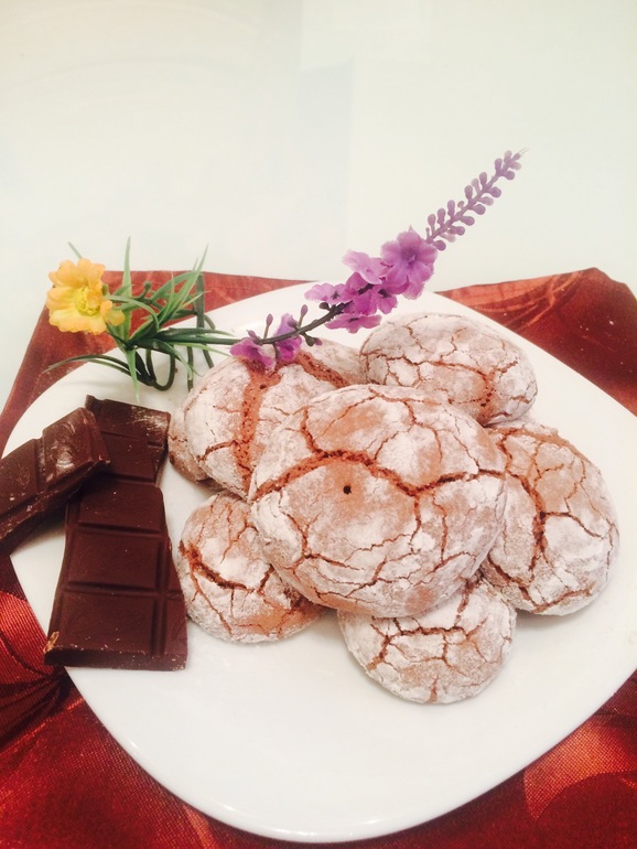 Яйцо взбейте с тремя ст.л. сахара(75г.). Растопите шоколад 50г. С маленьким кусочком слив. масла (10-20 гр.) на водяной бане или в свч. Добавьте тёплый шоколад в яичную смесь. Аккуратно ,но тщательно перемешайте и по немногу всыпьте 3 ст.л муки (100г.) выкладывайте чайной ложкой в сахарную пудру скатывая шарик. Шарик выкладываем на силиконовый коврик что у Вас есть. Выпекать 15-20 мин. 180 град. Если тесто жидковато не много муки добавьте . Печеньки по трескаются аромат будет просто обалдеть! Приятного аппетита! А ещё шарики делать маленькие и ложить подальше друг от друга они увеличиваются в размере. Ну вроде все!