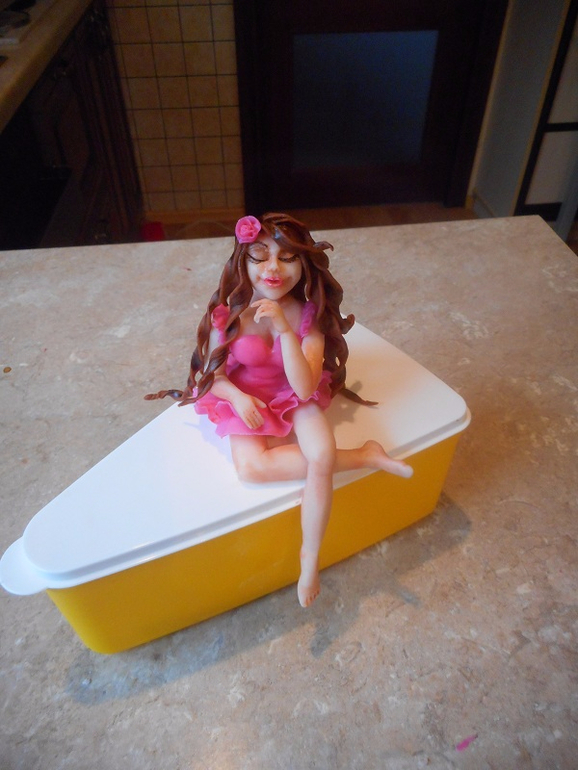 изначально решила, что это будет девочка) этакая мечтающая романтичная особа, такая же как именинница. Но девочки не получилось... получилась горячая красотка с грудями и губами)))) еще тот из меня скульптор)))