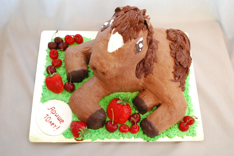 Для первого 3D - отлично: аккуратно, все в тему, цвета приличные. Теперь скажу жестче, чтобы без соплей розовых: голова лишь издали напоминает лошадь (скульптурке нужно придать форму головы лошади изначально, а кремом лишь подчеркнуть форму); ноги кажутся переломанными, потому что неверно расположены (нужно смотреть картинку, а не МК. Мастер класс чаще всего показывает лишь КАК сделать, а не ЧТО сделать и никак не заменит нормальное расположение ног у лежачей лошади); ноги просто приляпаны к телу без лопатки или бедра, а просто обрубками (я не знаю, что это за МК, но он фиговый! Всегда смотрите на результат МК и если получается такая же лошадь-паук, то не пользуетесь этим МК!); укорочение тела без изменения других пропорций вовсе не дает пони (!), а дает лишь непропорциональное нечто, напоминающее лошадь, с растущими из груди задними ногами. Как-то так. Это если говорить серьезно, раз уж был замах не на миньона, а на серьезную 3D-шку. Надеюсь, не обидела. Но и хвалить тут, кроме как за смелость, аккуратность (!!! А это уже много!!) и то, что голова не падает, пока мало есть за что. Удачи в др работах!