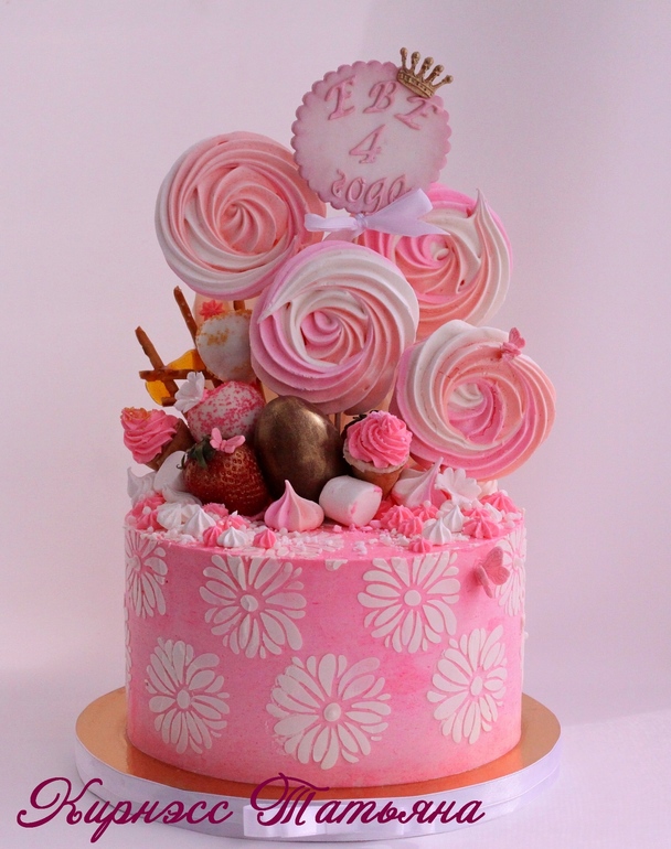 Украшение тортов кремом,шоколадом, фруктамиНежный тортик для девочки. Внутри ванильный бисквит, шоколадный мусс, клубника.
