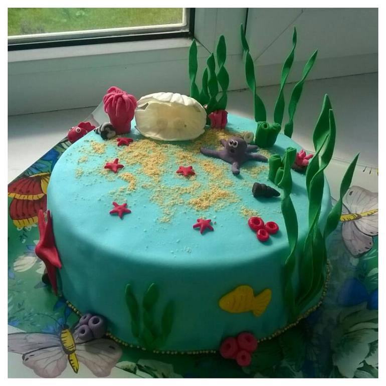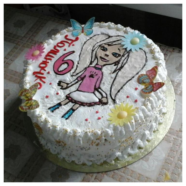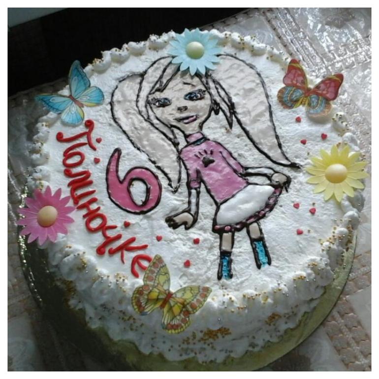 Мастикой покрывала первый раз,ну в принципе и так видно😁внутри молочная девочка с клубникой