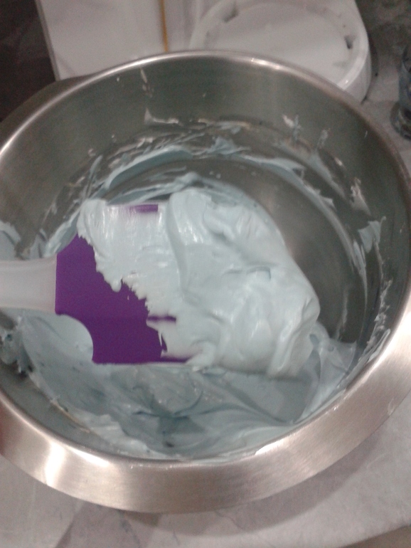 Теперь про выкраску. Раньше добавляла краситель в самом конце, перемешивала либо ложкой, либо комбайном, в любом случае краситель расстворялся и окрашивался хорошо. А теперь остается крупинками, не расстворяется. На первом фото дрбавила гдето 5 жирных капель америколоровского роял блю, на втором фото добавила еще две, расстворенных в полложки воды, но цвет остается какимто серым, никаким королевским синим тут и не пахнет.