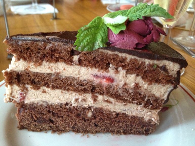 Шоколадный торт с клубникой и мятой
