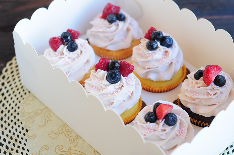Лимонные капкейки с лимонным курдом и кремовой шапочкой. Снова букет роз)