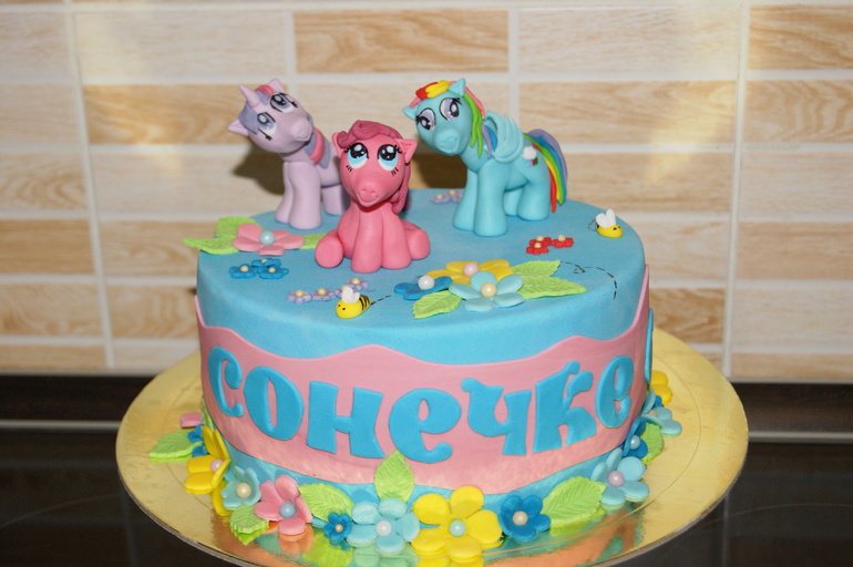 Торт с пони.2,2 кг. Внутри "Бедный еврей". Коржи с грецкими орехами,черносливом и курагой со сметанным кремом.