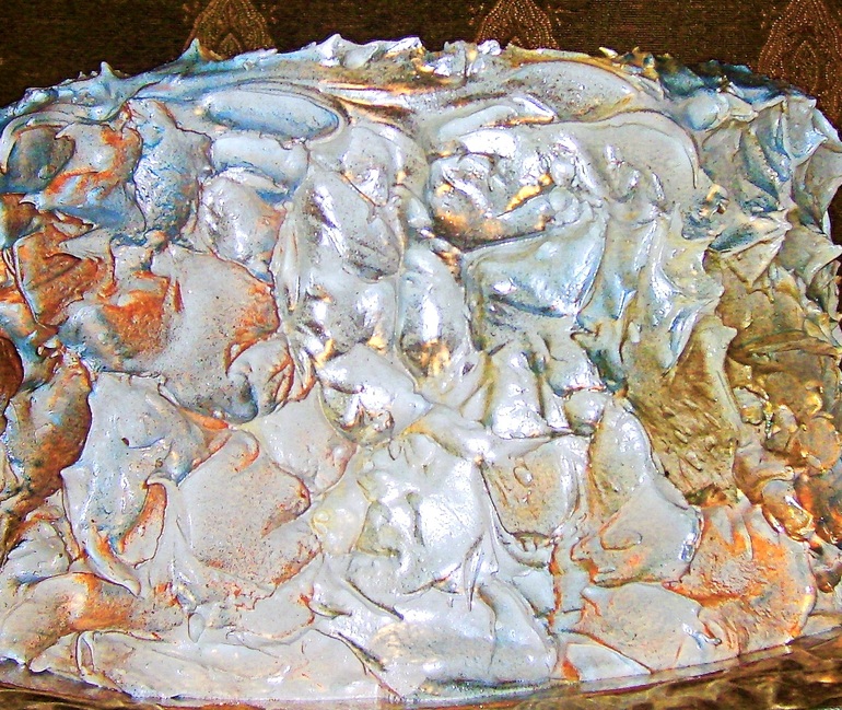 это белковый заварной.. на нем синий кандурин (виден где), янтарный (поэтому не надо янтарный на белковый заварной наносить - получишь тот ещё кирпич)).. золотой кандурин (почти не отличим от Татыного золота, но отличие есть).. а так же татын золотой и перломутровый.. а серебряный был с обратной стороны, но его уже съели на этой фотке..