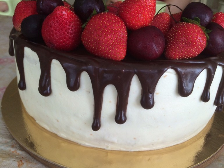 Украшение тортов кремом,шоколадом, фруктамиНежный такой для девочки, просто попросили с кремовым покрытием. Внутри шоколадный торт, вес 3 кг.