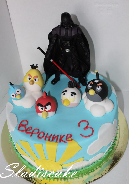 Для девочки трех лет Вейдер и Энгри Бердз - в одном торте.