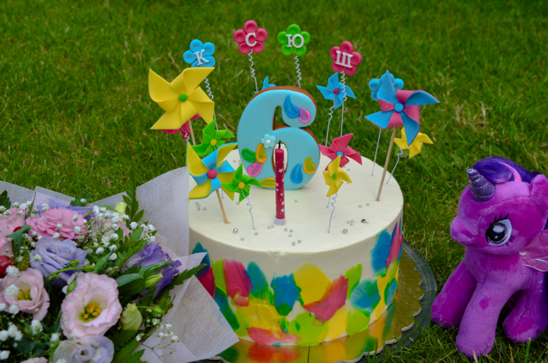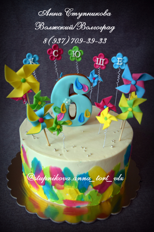 И разрезик тортика с вертушками(для племяшки подруги. Они с моей племяшкой родились в один день))