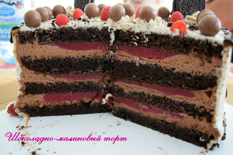 Тортик с малиновым (непойми чем, и не конфи, и не желе...желатин не нашла, хотя был, пришлось загущать крахмалом...не то, но пойдет, но на будущее так делать не буду) и крем от Инны(Blue freska). нямушка!
