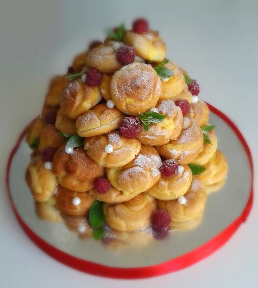 Нарядный. Маленько осевшие профитроли, но общий вид вполне аппетитный.
