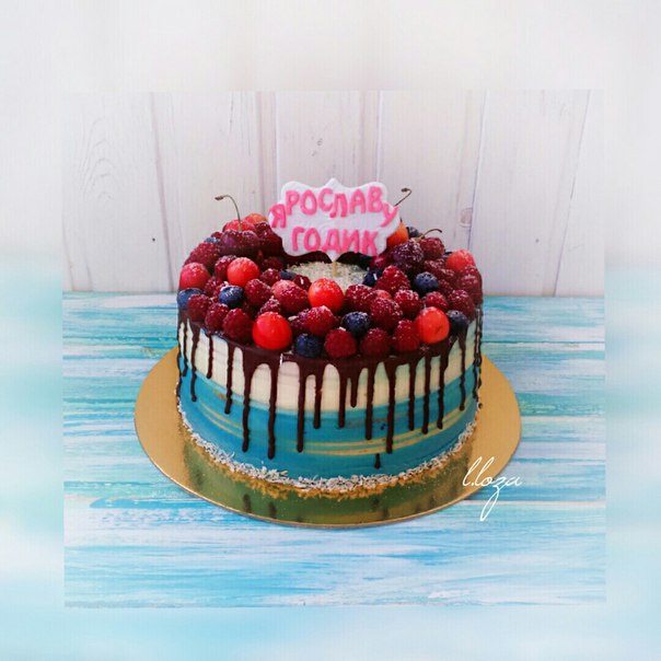 Украшение тортов кремом,шоколадом, фруктамиванильный бисквит, творожный мусс и малина, покрыт кремом с маскарпоне и ягоды