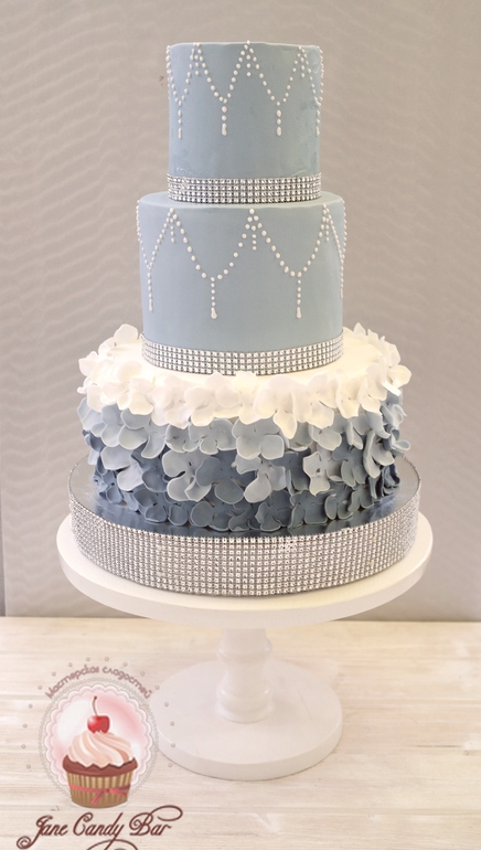 Торты свадебныеФотоаппарат, как обычно,бессовестно искажает цвет. Очень благородный серо-голубо-сиреневатый. Будет украшен цветами. вес 8.5кг . верхний ярус бессовестно вспотел((
