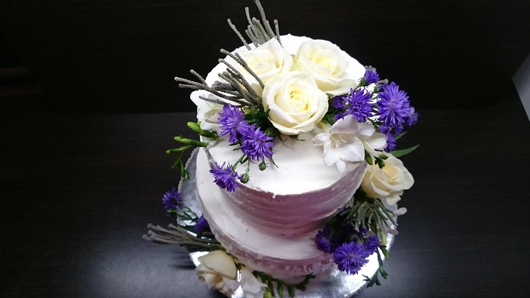 Украшение тортов кремом,шоколадом, фруктамиВот и я открыла свадебный сезон в этом году! И первым свадебным тортом сезона стал торт, кардинально отличающийся от моей, так сказать, специализации. кремовый да еще и с живыми цветами!