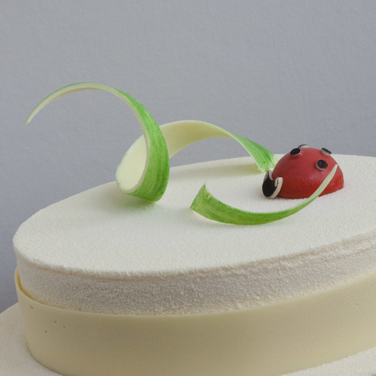 Декор из белого шоколада, букашка - клубничный крем под глазурью
