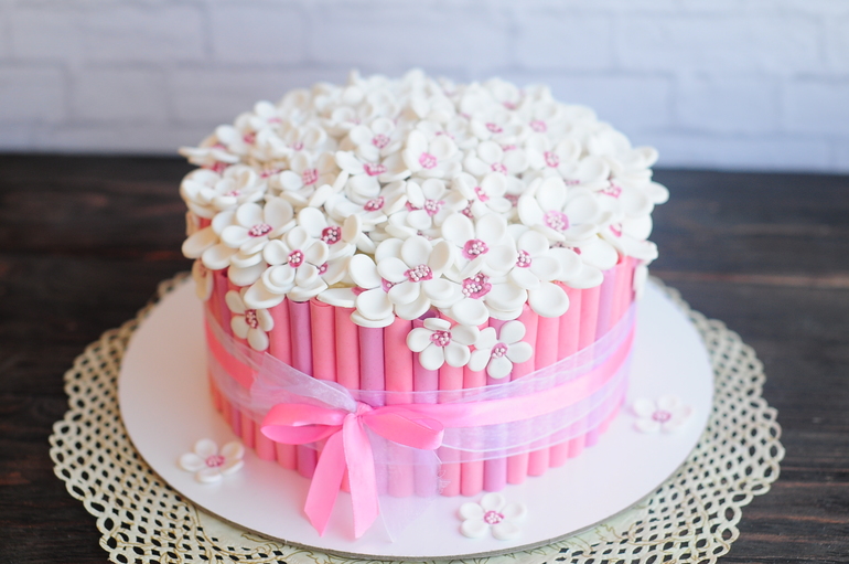 Торты детскиеПопросили сделать точно такой же торт только розового цвета. Сложно было представить как он будет смотреться, но результатом я довольна, а самое главное довольна заказчица :) Торт был дополнен еще очень милыми именными топперами. Жду фото от заказчицы...